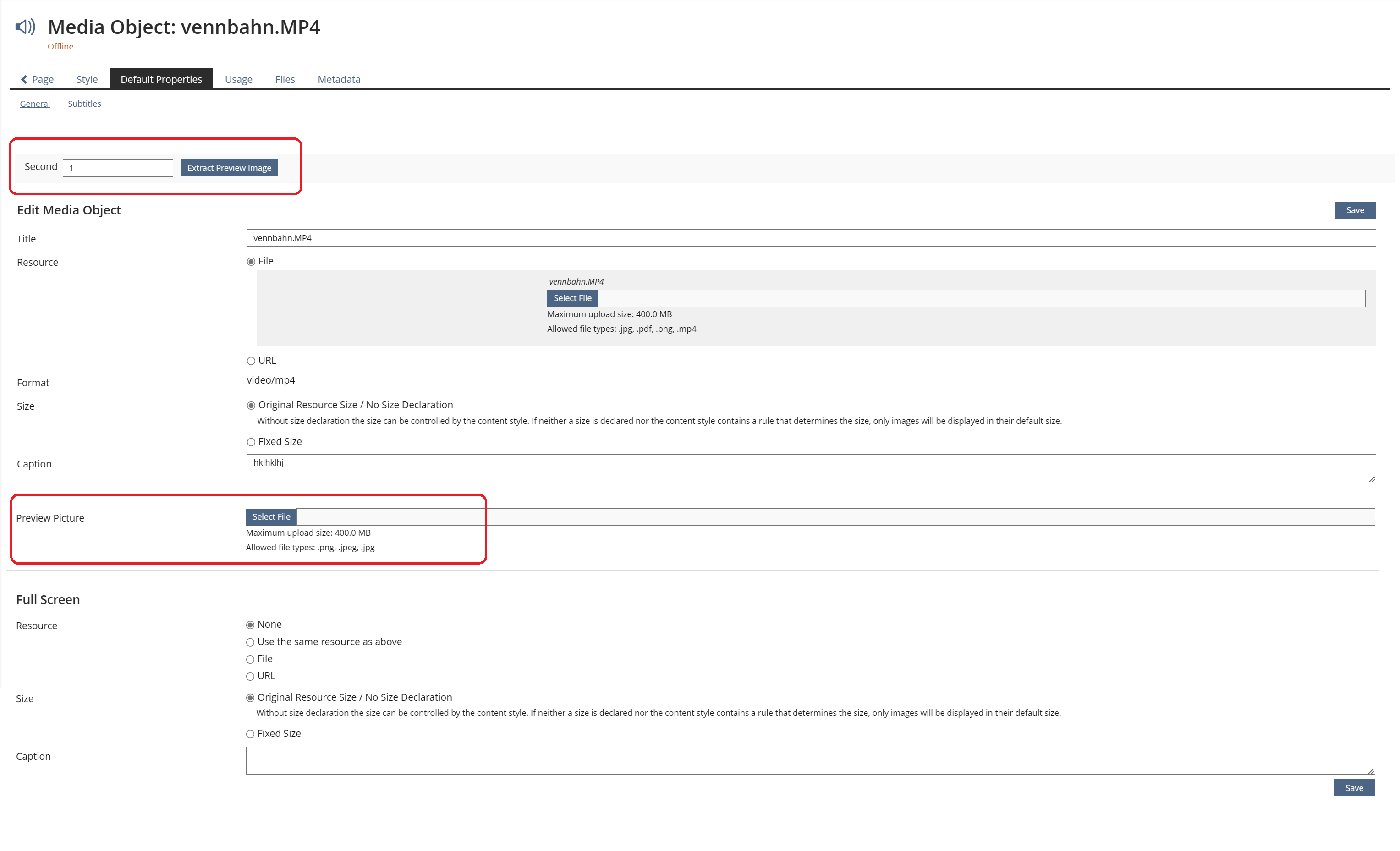 - Extract preview image = user chooses a frame from the video itself as a preview picture.