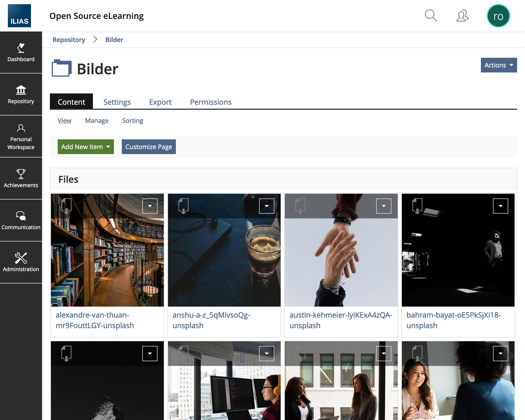 JourFixe, ILIAS [jourfixe], 17 APR 2023: We highly appreciate this suggestion and schedule the feature for ILIAS 9. The permission to see the tile image based on the file preview should be similar to the current presentation of the file preview. If no READ permission is given to user, the generated tile image / file preview is not shown. In this case, only the coloured default image of a file is presented.