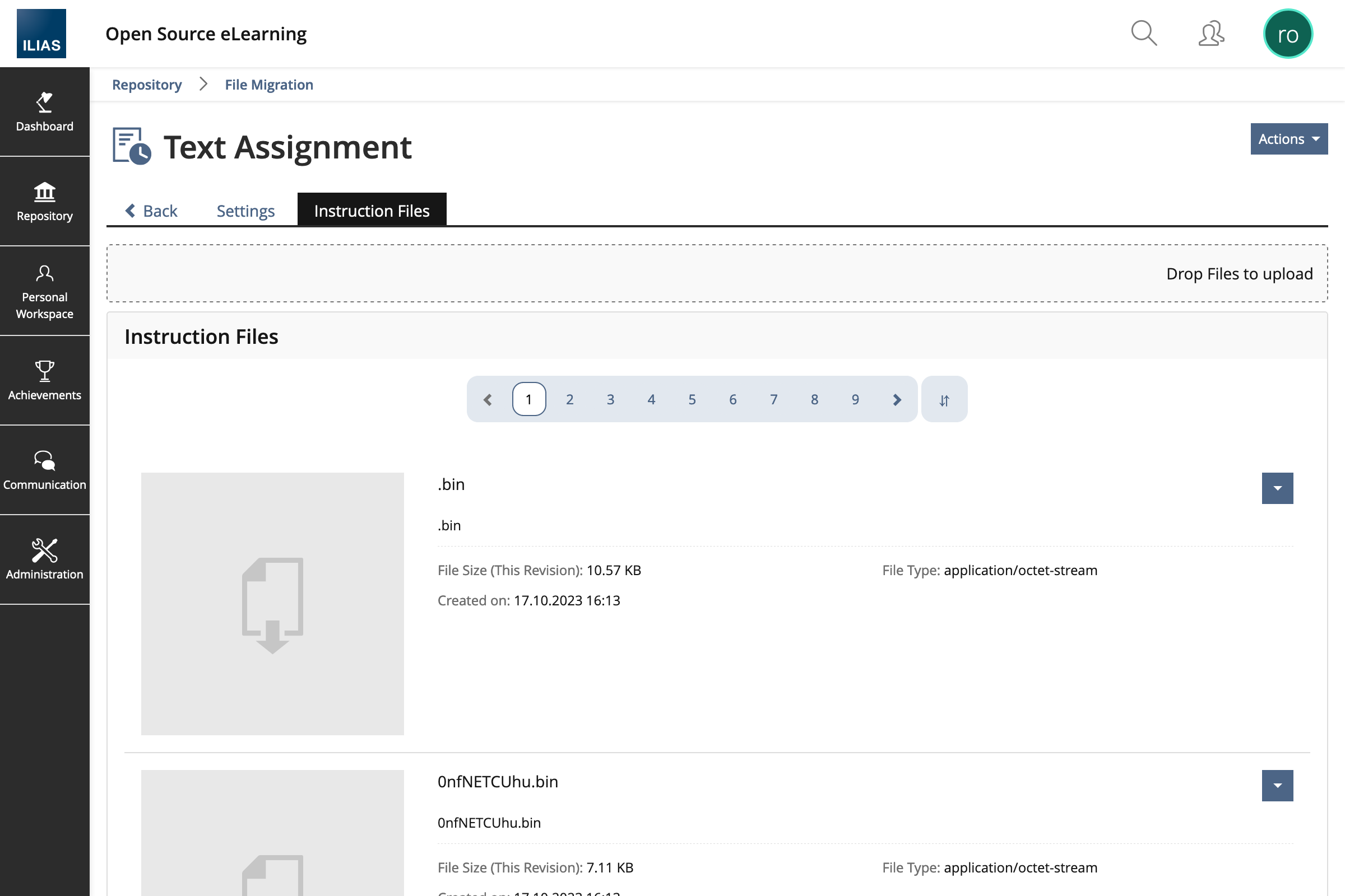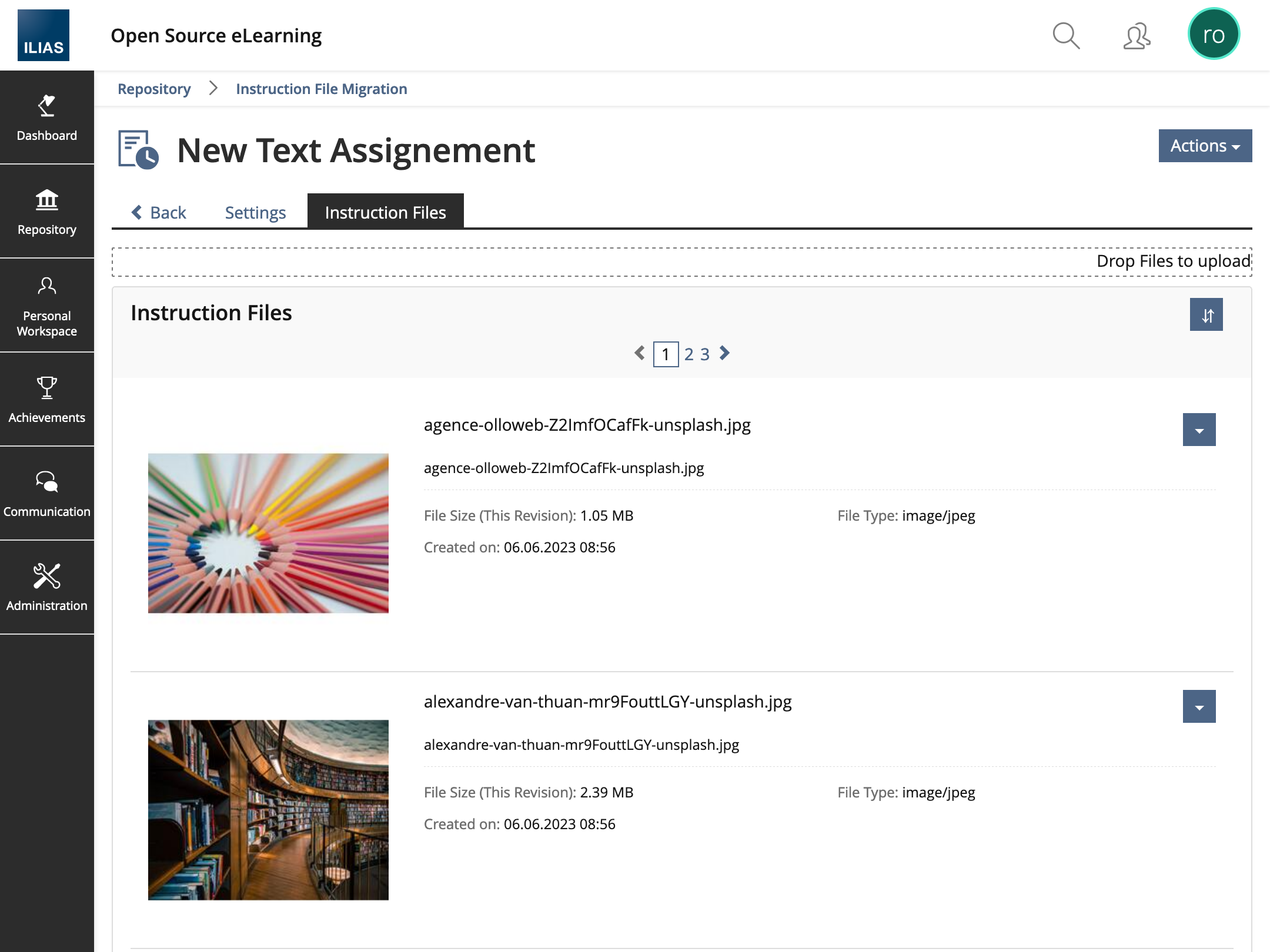 The IRSS allows the creation and management of so-called collections (compilation of several resources into one group). This feature is used wherever users can add several files to an "object", e.g. with ILIAS the instruction files of an exercise unit are transferred to a collection.