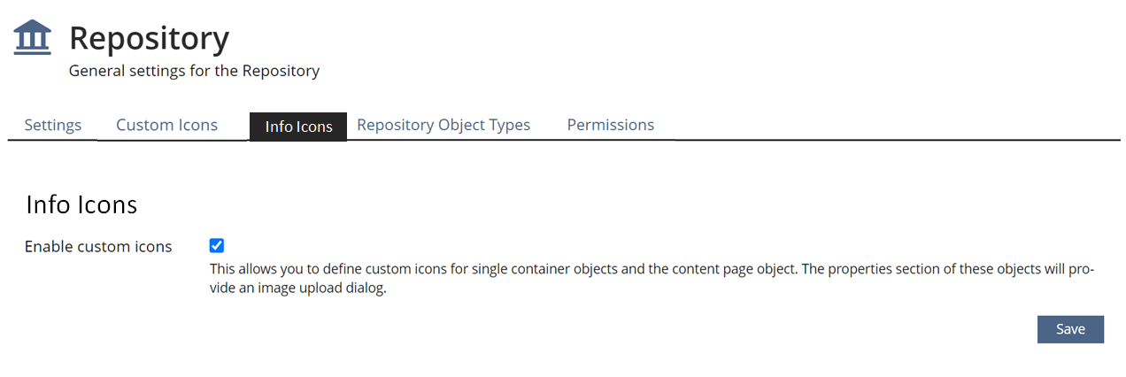 - Administartion > Repository and Objects > Repository > Info Icons (new)