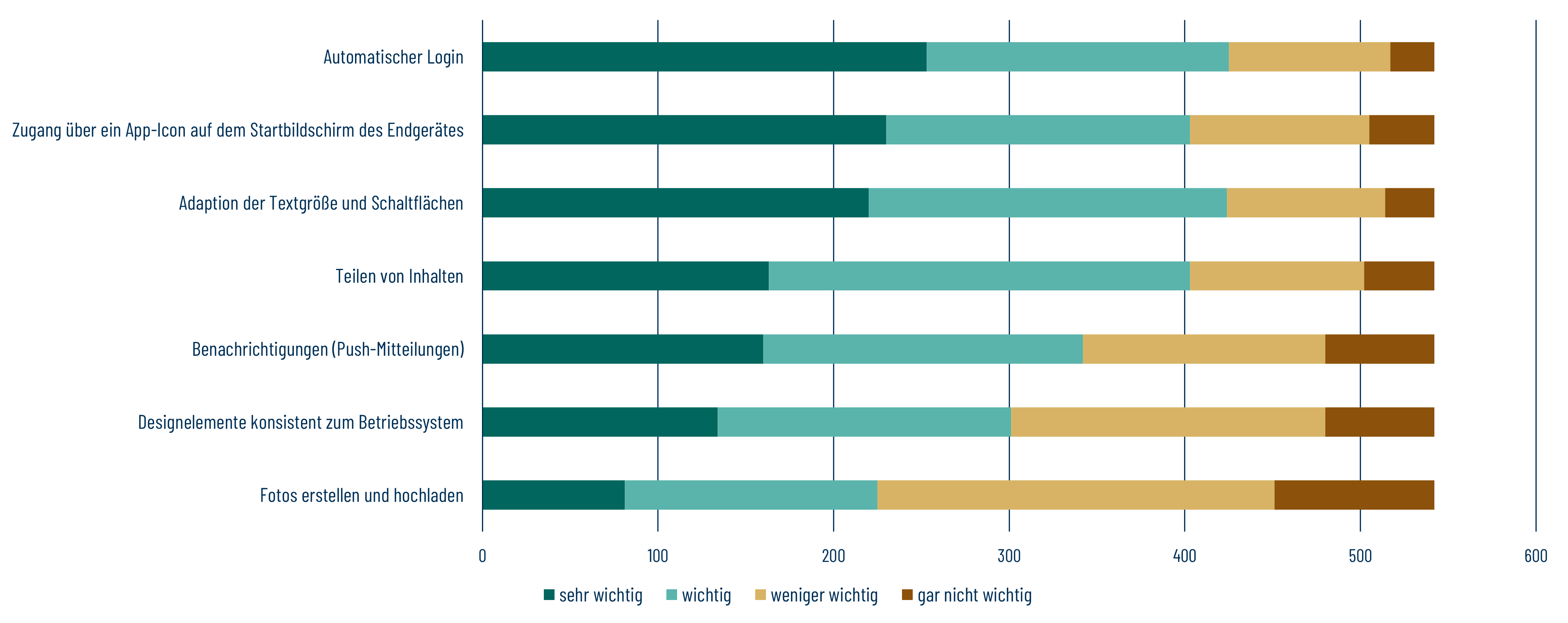 As part of ILIAS.nrw, a survey was conducted at a university in NRW to explore which features are considered important or unimportant by users when accessing ILIAS via mobile devices. A total of 543 participants shared their perspectives on this topic.