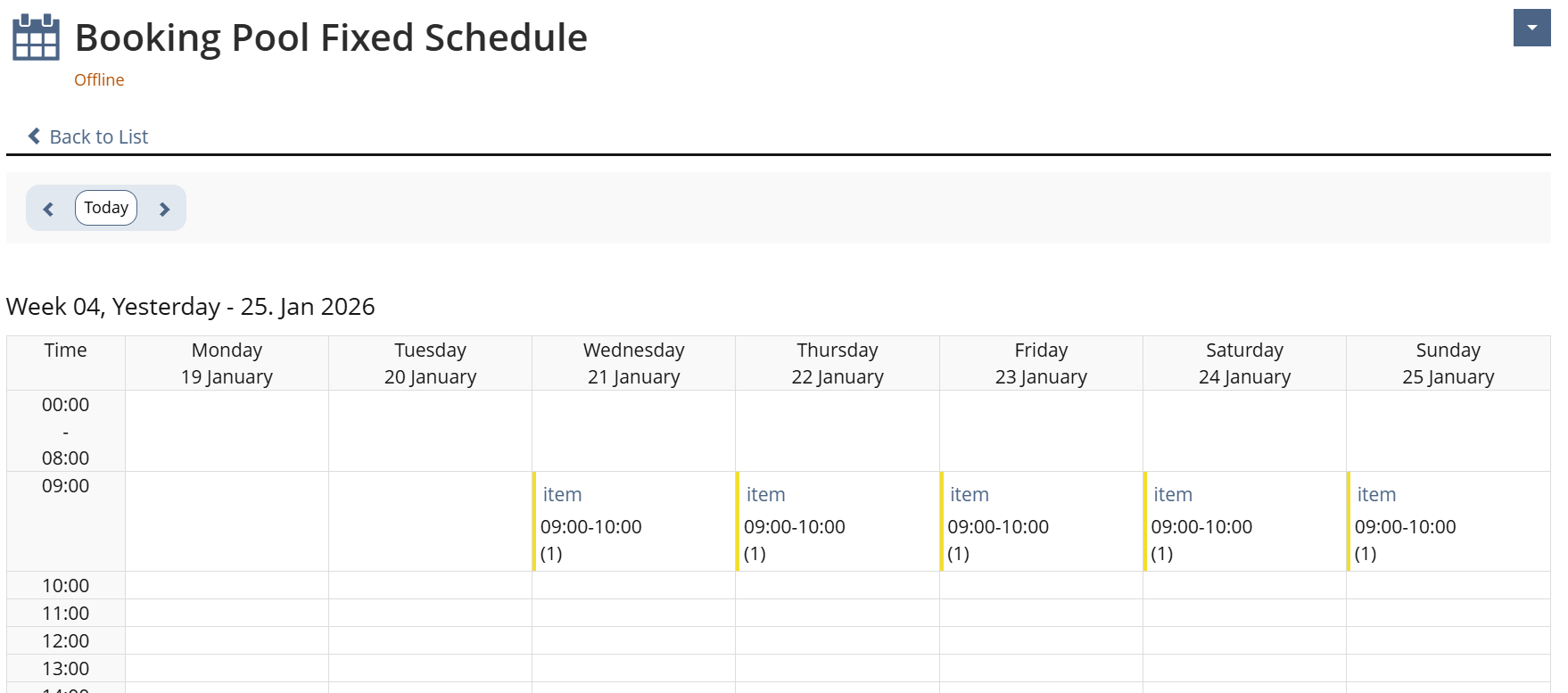 - Booking Pool with Fixed Schedule ›› Bookable Items