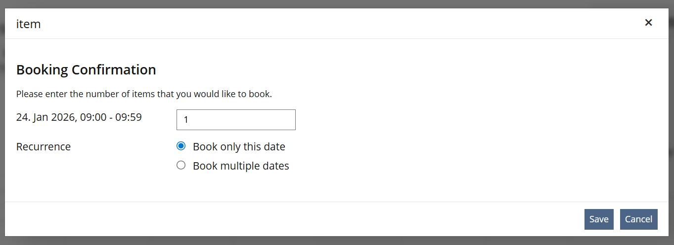 - There is no way to book all time slots of one bookable item e.g. for the whole day.