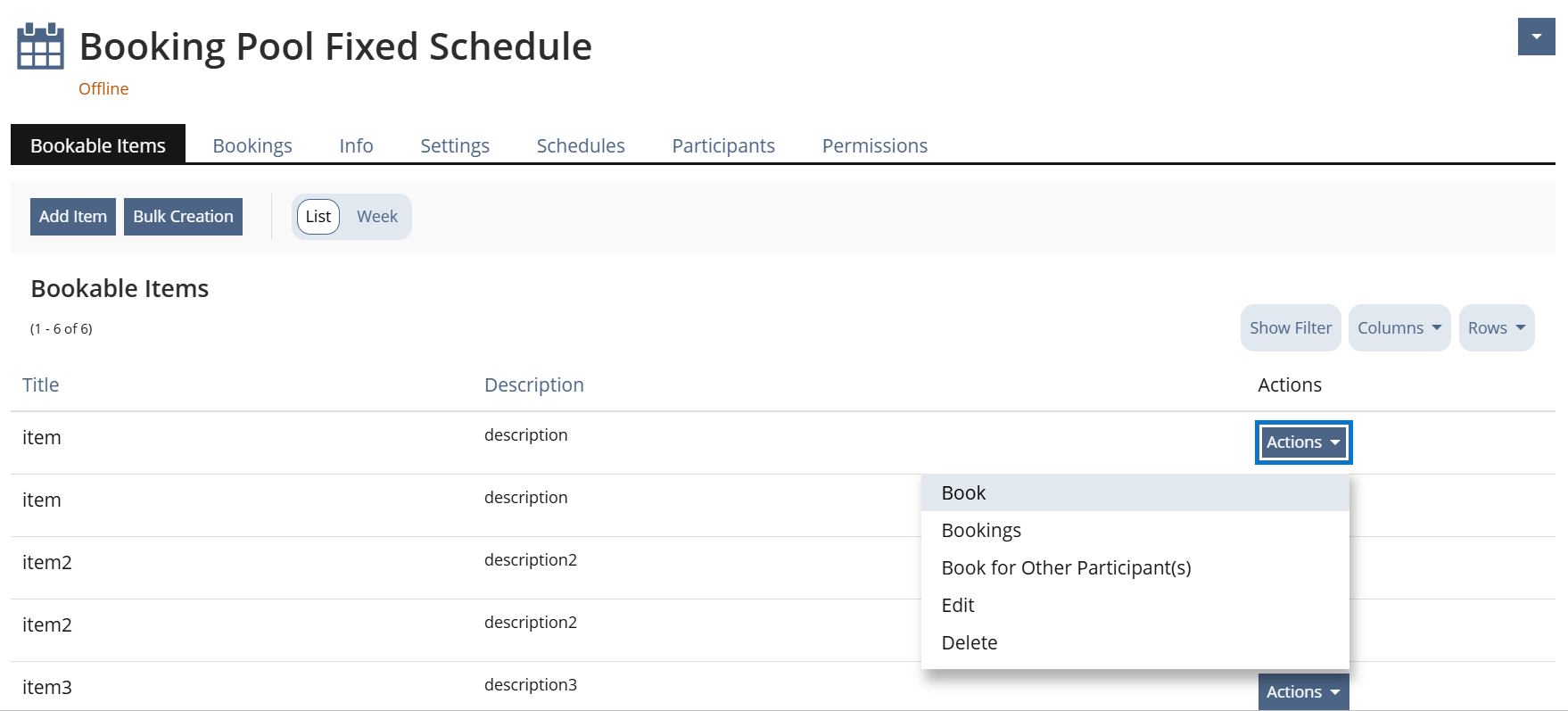 3.2.1 Booking Pool with Fixed Schedule ›› Bookable Items