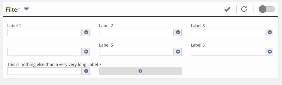 - Filter are gridded with a fixed width of all individual filter elements