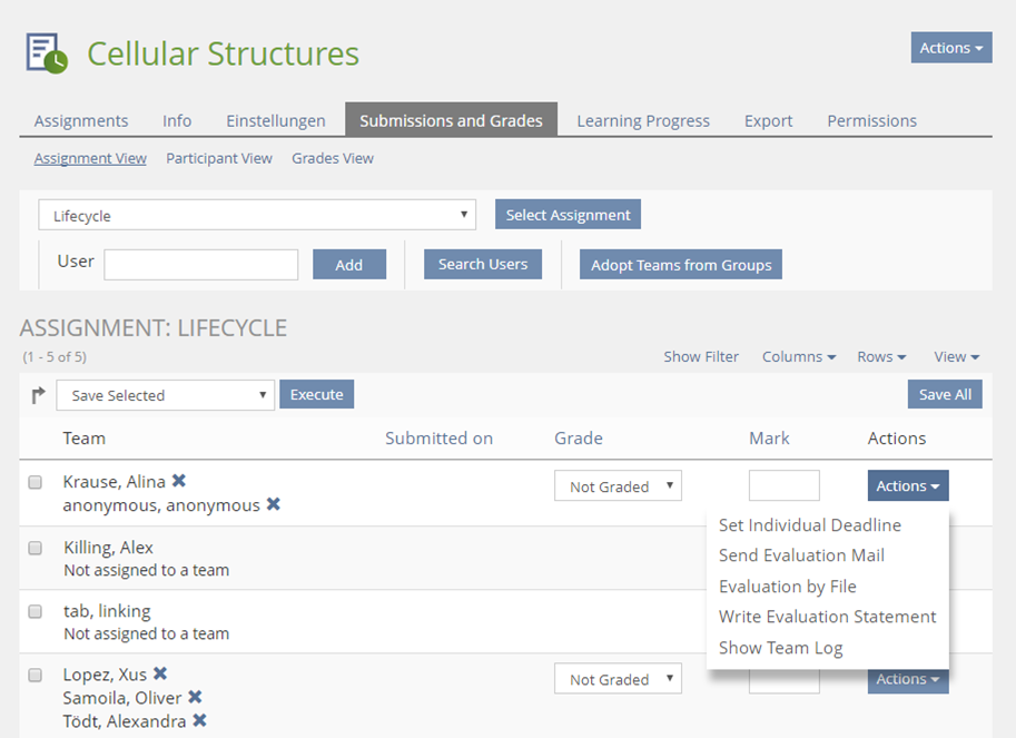 - Exercise > Submission & Grades