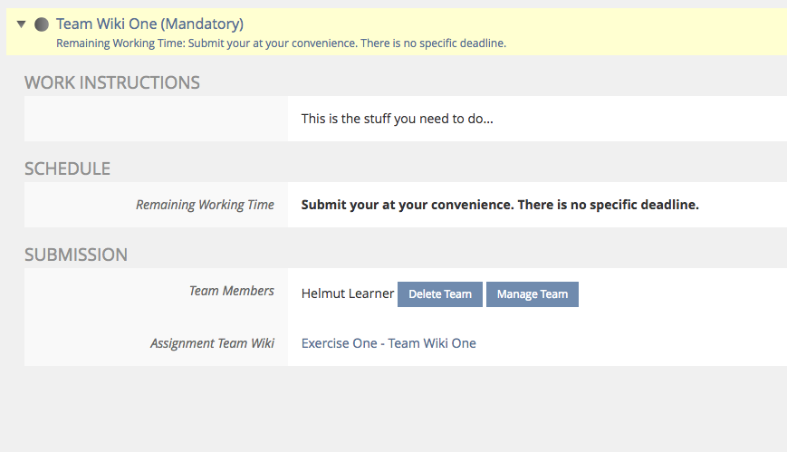 - ILIAS inserts the "Assignment Title: Team Title" as the title of the wiki.