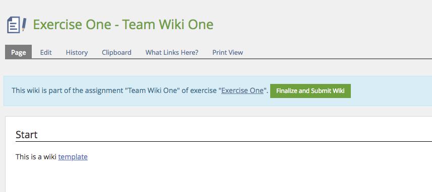- Start Page of Wiki created from assignment