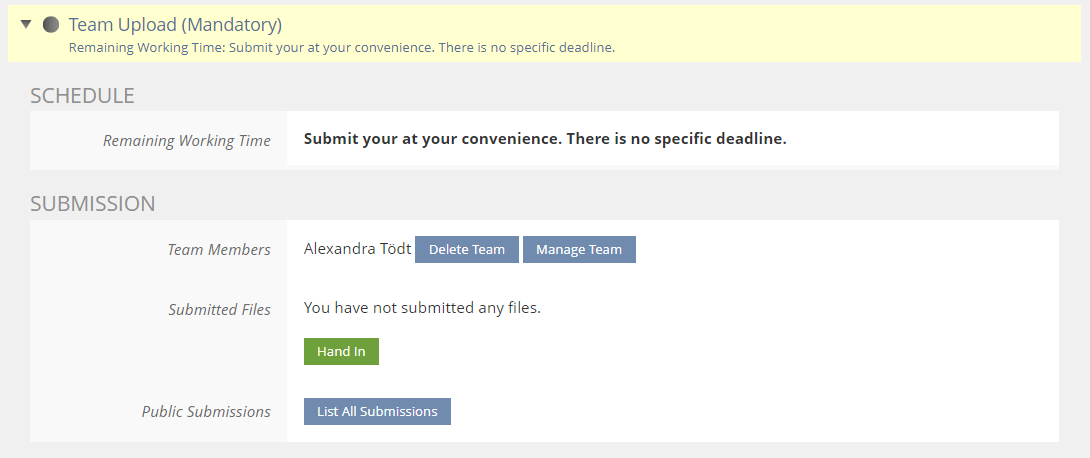 - Tutor opens tab Submission and Grades and selects the Team Upload Assignment.
