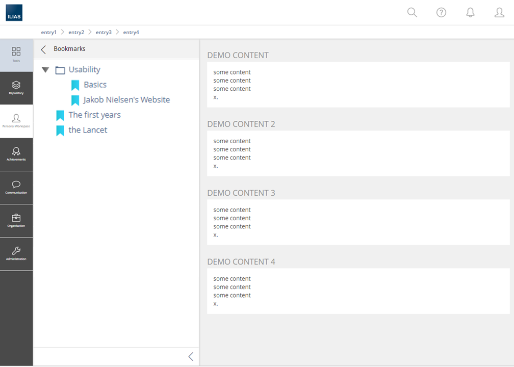 Kunkel, Matthias [mkunkel], 28 OCT 2019 : In the meantime, bookmarks have been abandoned for ILIAS 6, see Abandon Bookmarks. Therefore, I have removed "Bookmarks" from the title of this feature request.