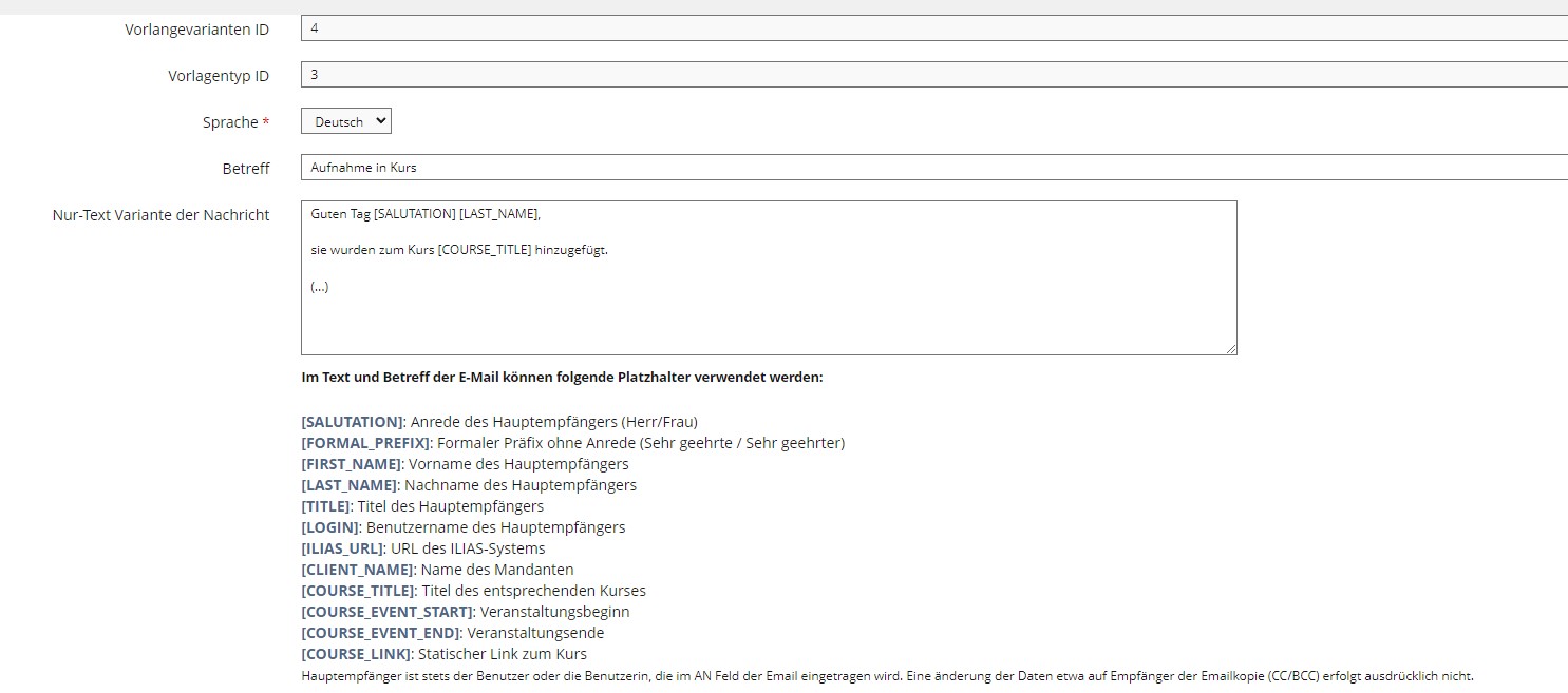 It is very uncomfortable to adjust mail texts and their layout. For this reason, a central area in ILIAS is required to maintain system mails.