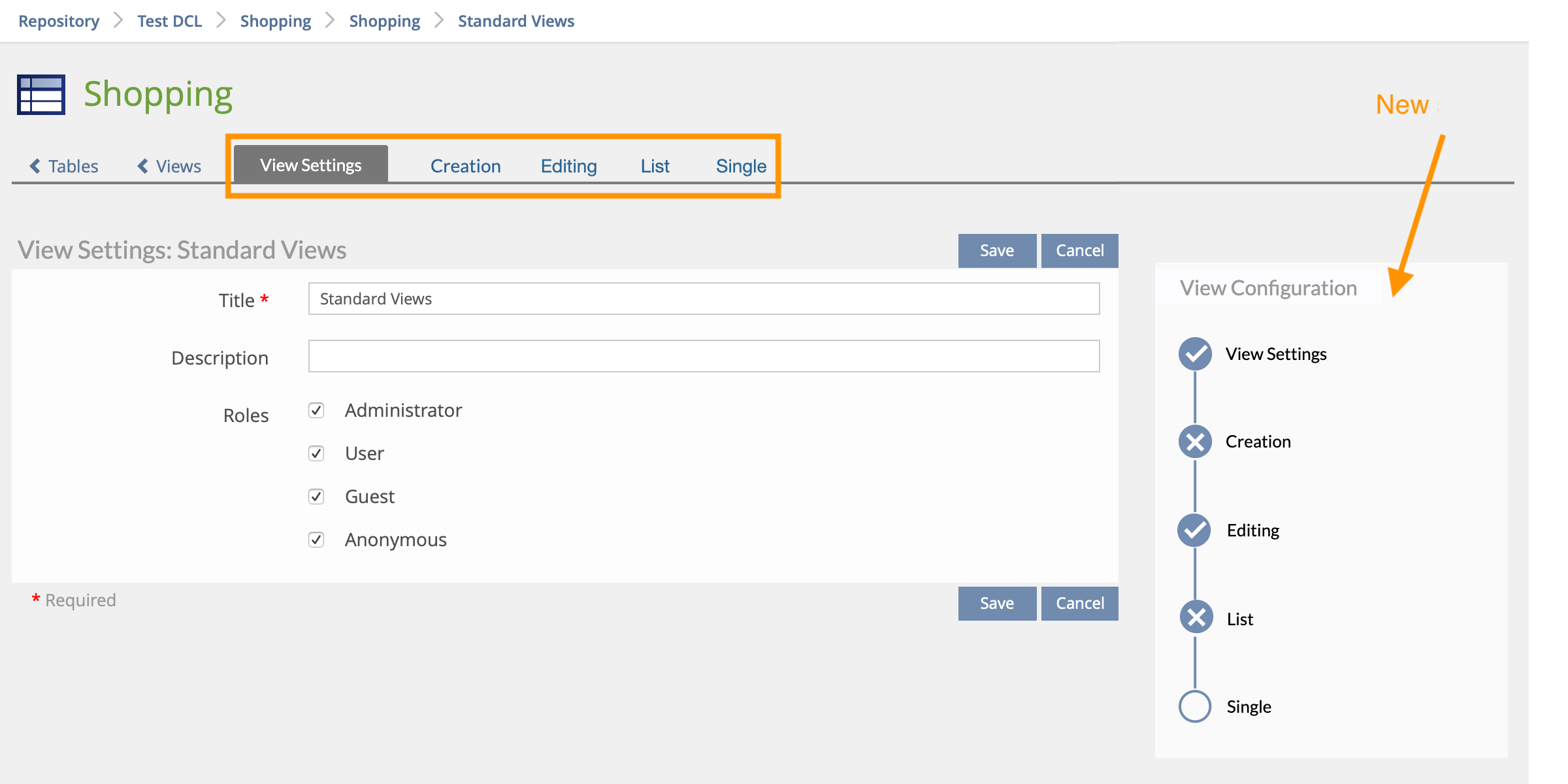 - The term "view" can be misunderstood therefore we suggest to omit the term in the tab titles.Further we we propose to rename "Visibility and filter" and "Detailed view" to "List" and "Single". With the more appropriate and shorter titles we hope to achieve a better understanding of the (new) configuration possibilities and a clarity of the interface.