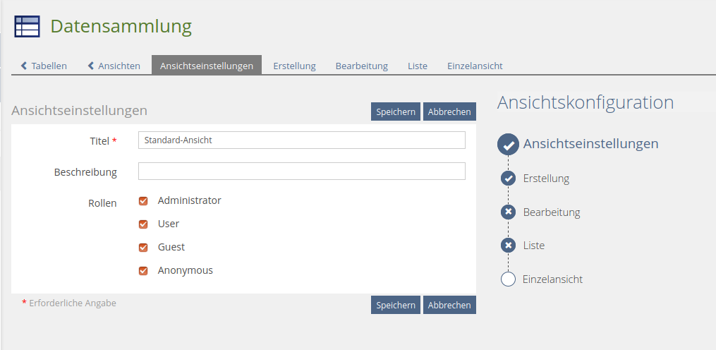 There are currently two view configurations available for data collection - "Visibility and filter" and "Detailed View". These configurations can be used to define which fields should be displayed in which way in the corresponding views. But different use cases may require more configuration options: