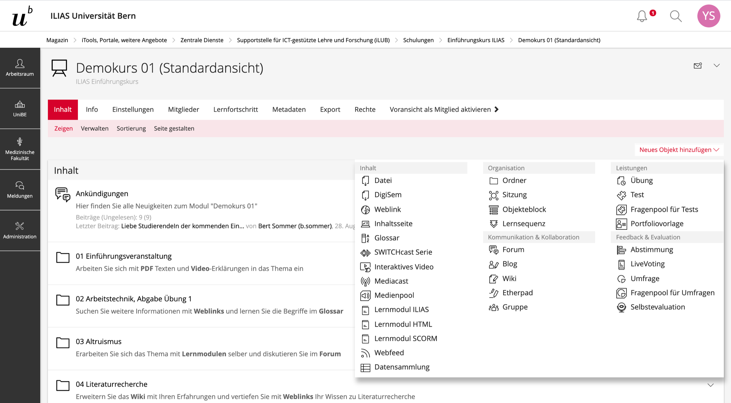 Mit der Universität Bern ist eine der ersten großen Installationen auf die neueste ILIAS-Version gewechselt. Seit dem 6. August läuft ilias.unibe.ch auf ILIAS 6 – mit neuem ILIAS-Look und angepasstem Skin. Wir haben heute mit Timon Amstutz gesprochen, der mit seiner Kollegin Yvonne Seiler den Umstieg realisiert hat.