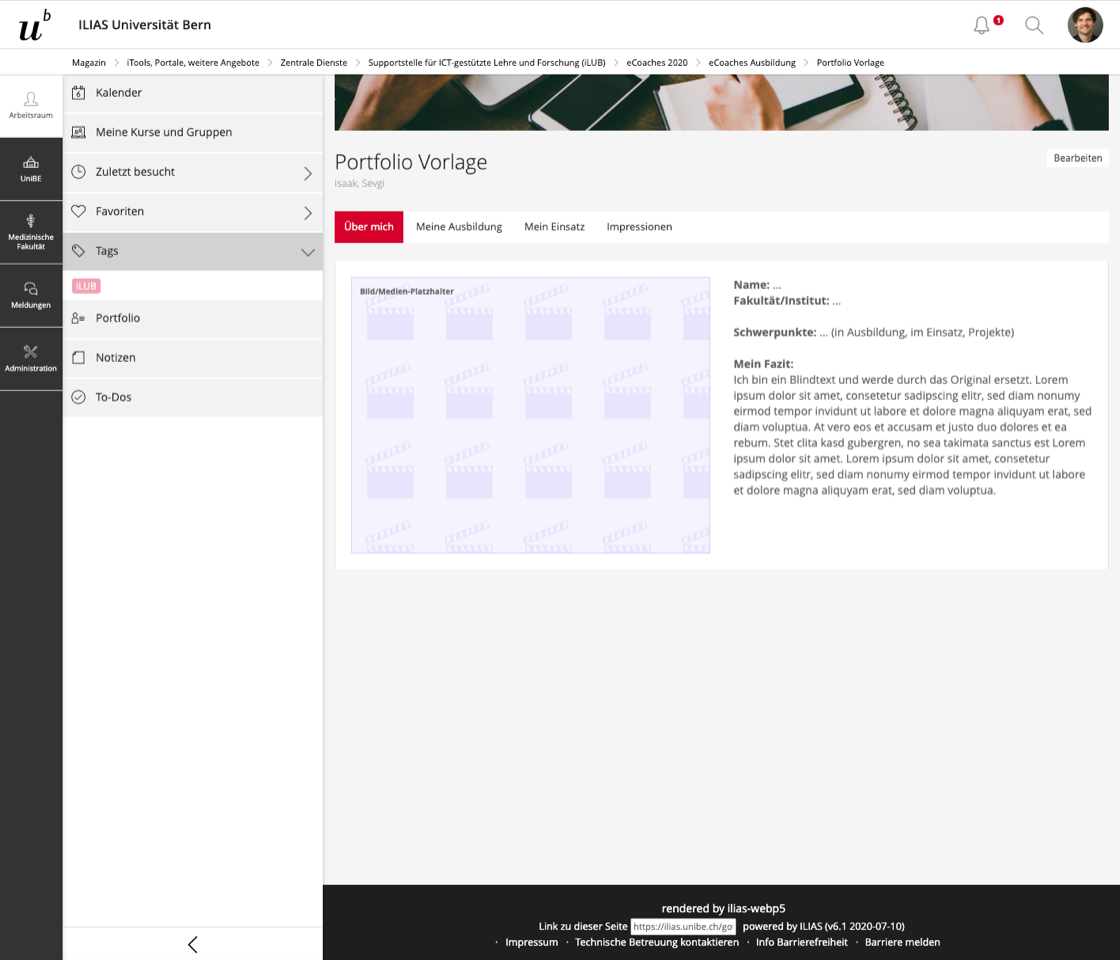 ILIAS 6 ist mit Fokus auf Benutzer*innen konzipiert, welche noch keine ILIAS-Erfahrung haben. Die verwendeten Konzepte in der Metabar und Mainbar sind von anderen gängigen Webplattformen inspiriert, was externe Konsistenz erzeugt und dazu führt, dass sich Benutzer*innen auch in ILIAS schnell zurecht zu finden, ohne es vorher bedient zu haben.