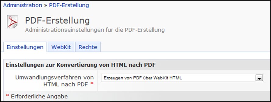 - Um eine möglichst generische Einstellung für die PDF-Generierung zu erreichen, wurde eine neue Administrationsoption „PDF-Erstellung“ für ILIAS hinzugefügt. Dort kann über den Karteireiter "Einstellungen" das Verfahrens zur PDF-Erstellung festgelegt werden.