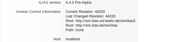 Most ILIAS-Installations are directly synced from a SVN-Repository. It would be nice to show the SVN-Revision in the Adminstration. Technically this is possible - compare the following stand-alone-script as a proof of concept: