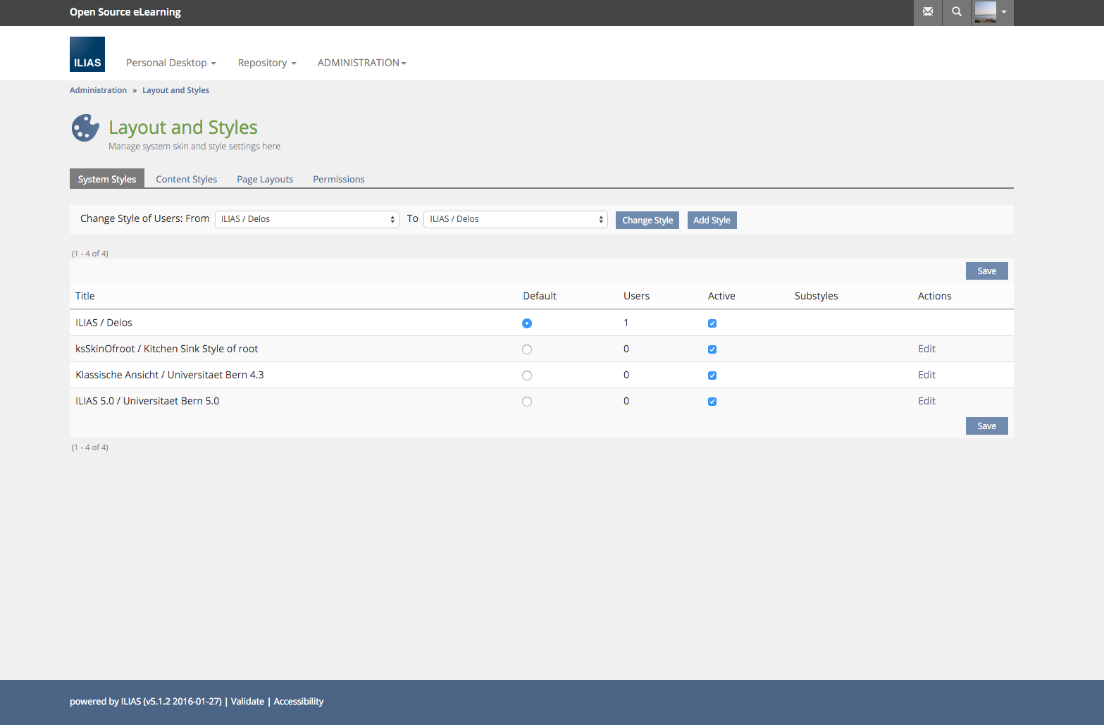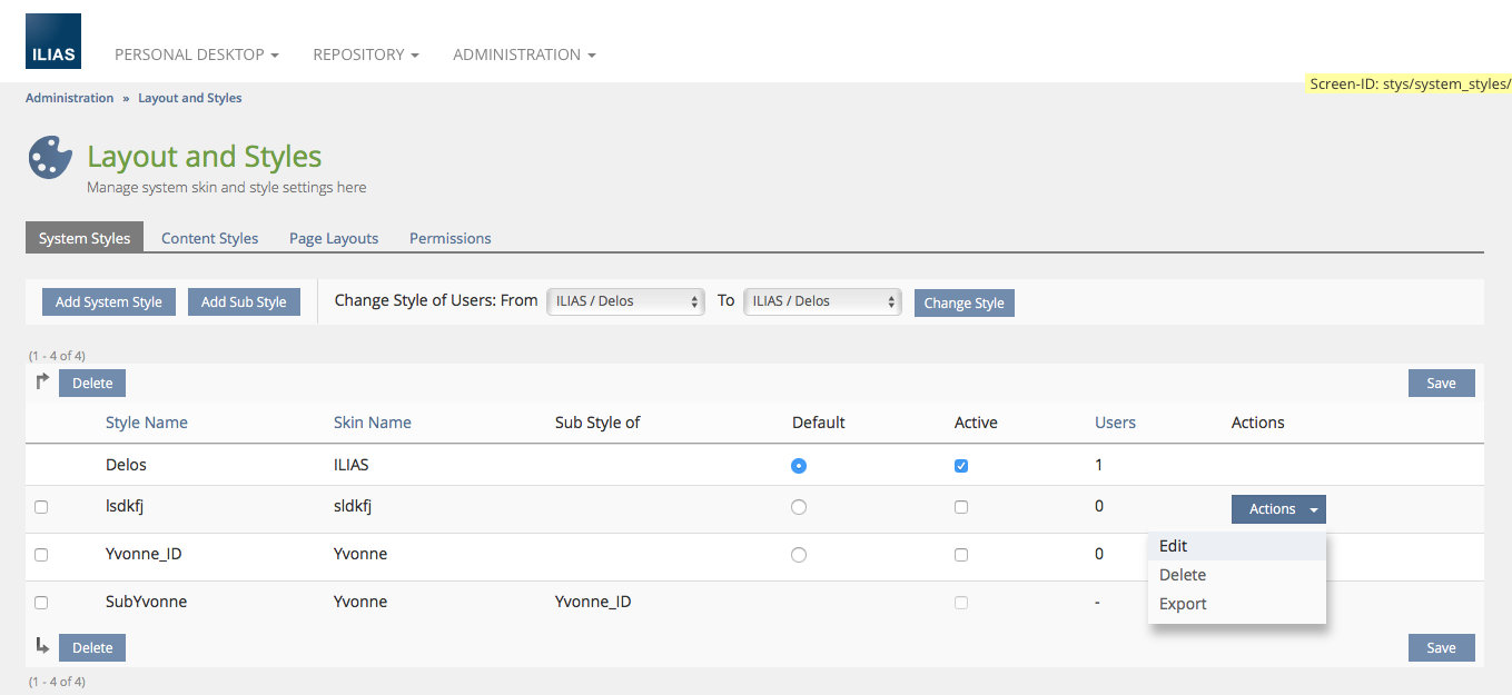 - One new permissions need to be added for this screen: "Edit System Styles" to change existing system styles. The requires a slight reorganization of the permissions for the layout section in the administration.