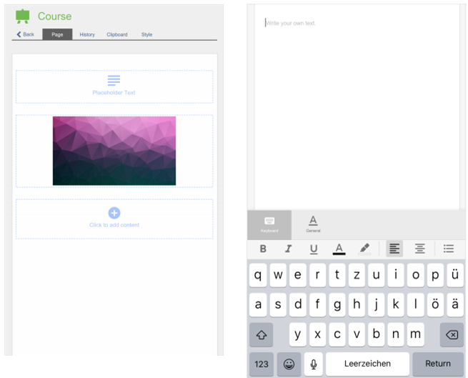 - Tapping on an existing content element provokes the Actions for this element to be presented.