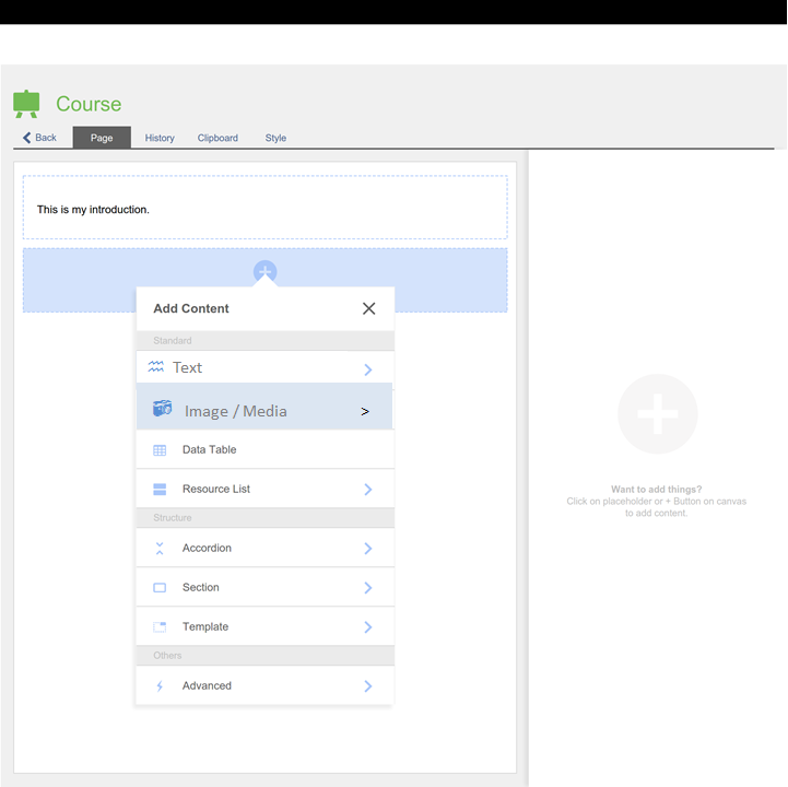 - Page Templates as known from the SCORM Editor are to be available in all instances of the Page Editor.