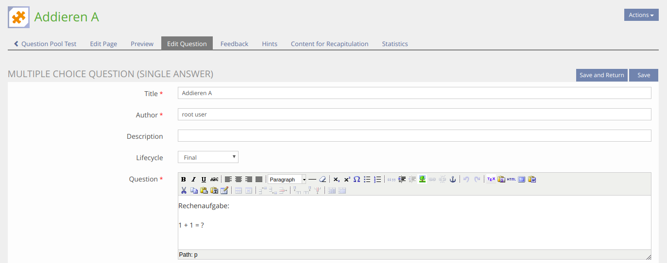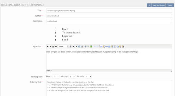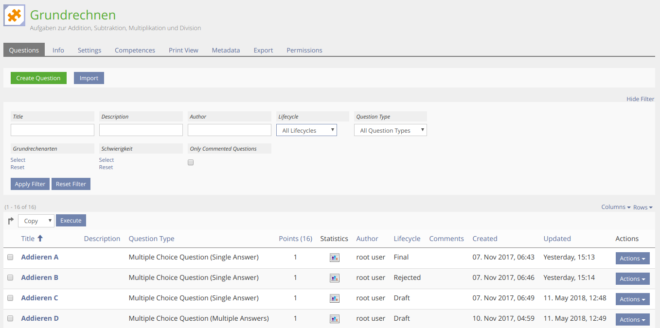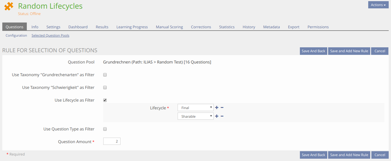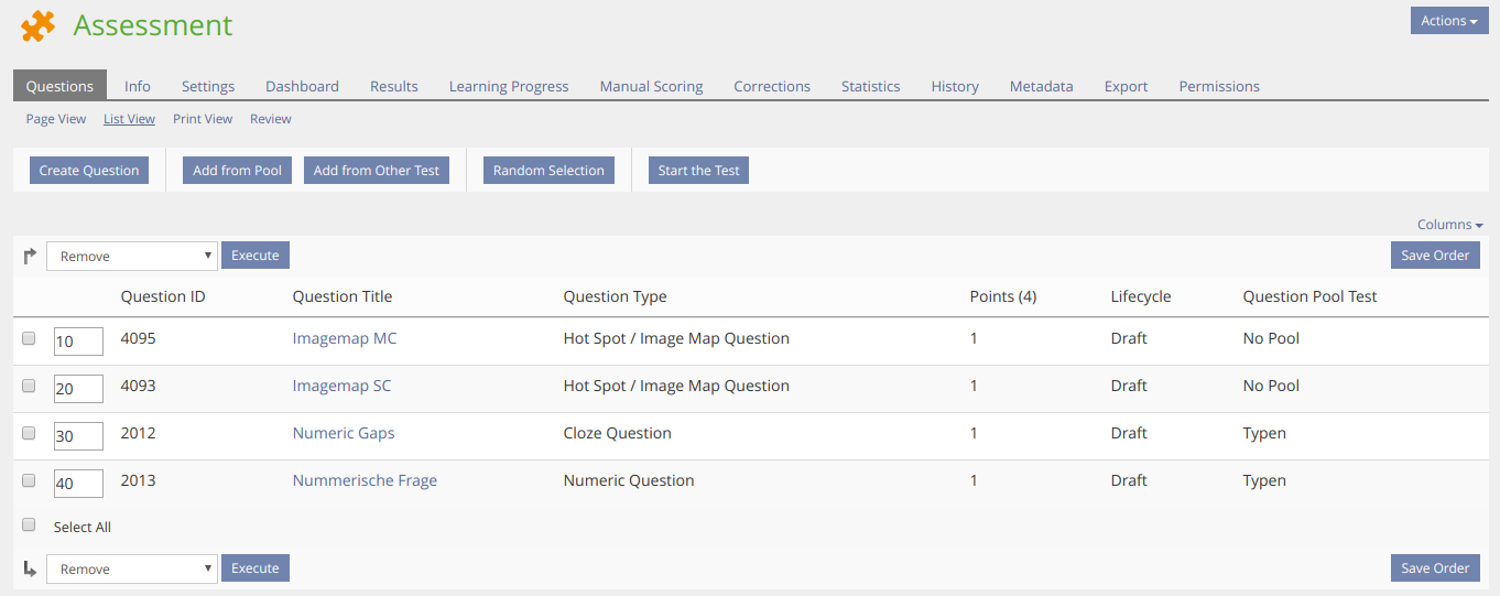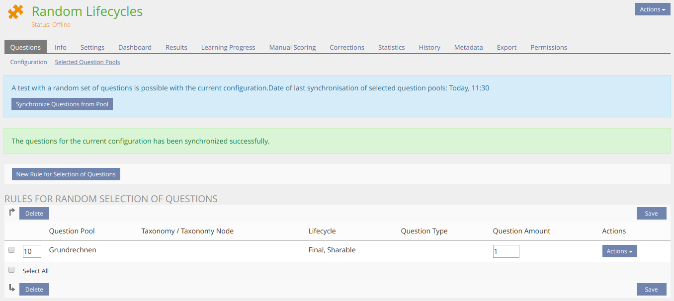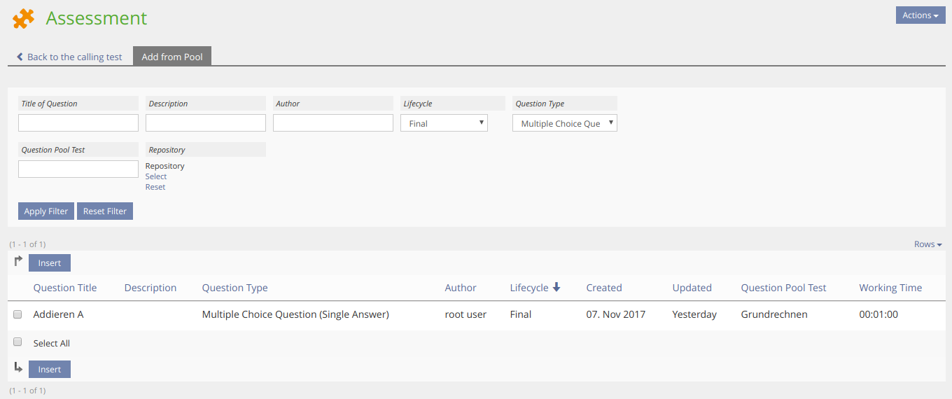 - Only questions with Lifecycle Status final are inserted from a pool to a test.