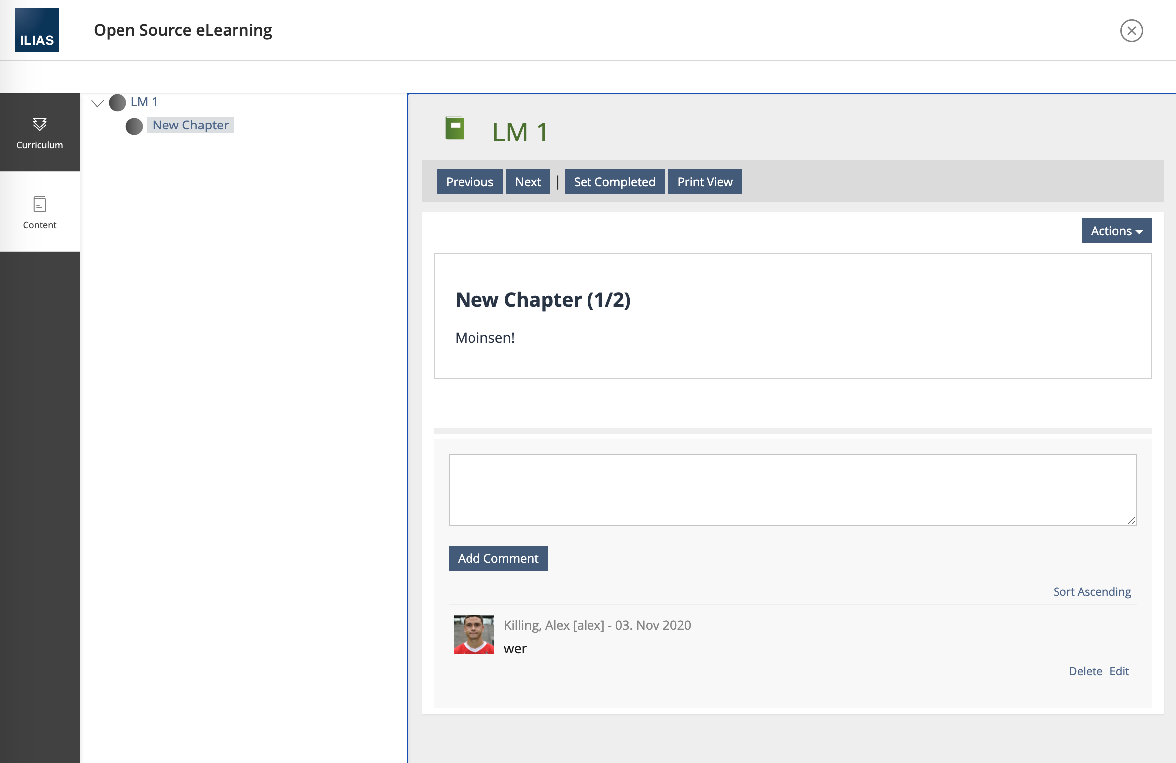 - Maintainer: Killing, Alexander [alex] for component ILIAS Learning Module