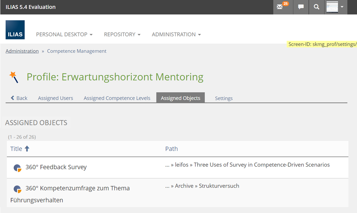 Admininstration > Competence Management > Profiles > Edit > New Tab "Assigned Objects"
