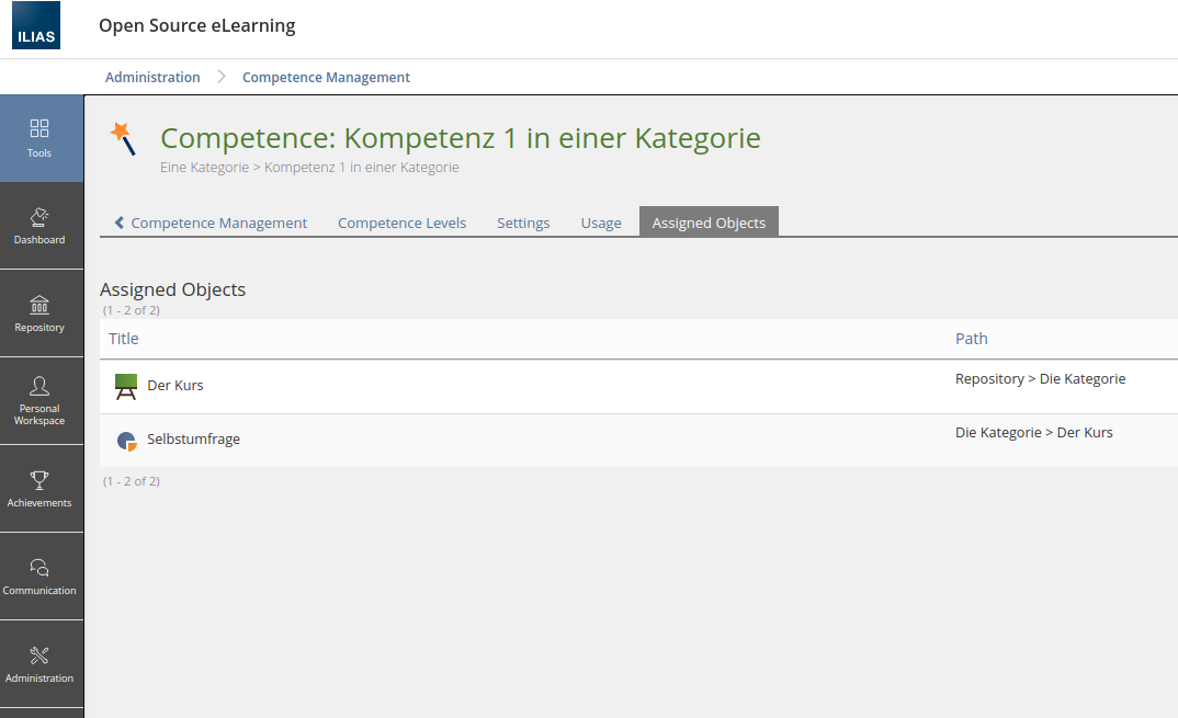 - The assigned objects of all Competence Template Refernces for the given Competence Template will be shown. If multiple Competence Template Refernces are assigned to the same object, the object will be shown only once.