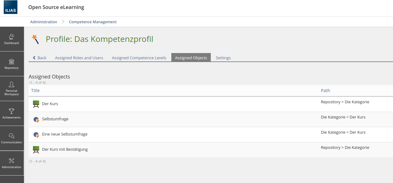 - Additionally, objects will be shown, where the Competence Profile was assigned