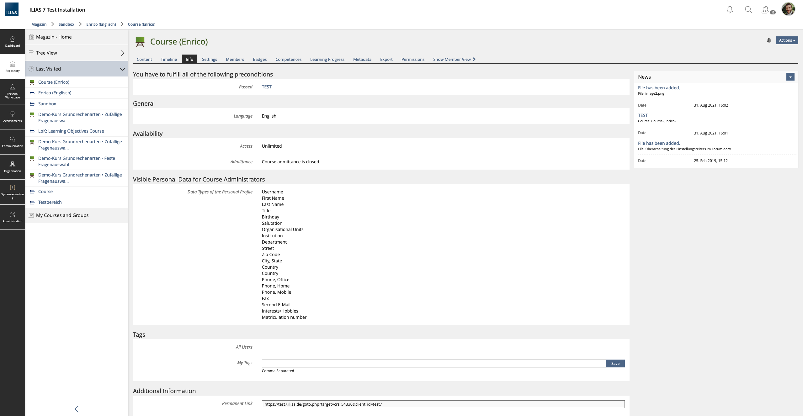 - … { Please list titles of all views (screens) of ILIAS that should be modified, newly introduced or removed. }