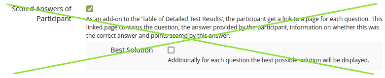 During the revision of the test settings in the project ILIAS.NRW, we have determined that this setting represents a duplication to “Show Best Solution in ‘Detailed Results’.”