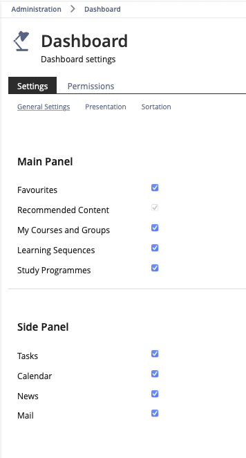 DevIssue 2) Composition of the Subtabs and Form SectionsDuring the implementation, it became clear that the integration of the settings for Sortations in the "General" subtab is inappropriate. The menu design with the exception "Sort by Start date" for "My courses and groups" and the possible exception for the default sorting for this section is difficult to understand.