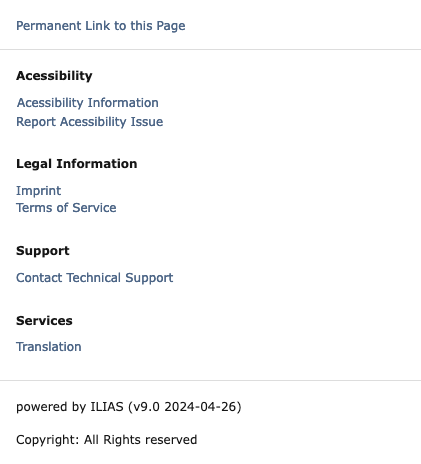- A list of links that lead to different functions in ILIAS, e.g. the imprint.
