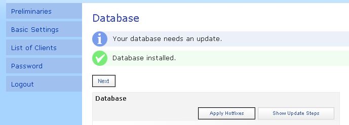 The steps to create a client require you to provide access to the database service, some contact data and proxy-settings if your system needs a proxy to access internet data.