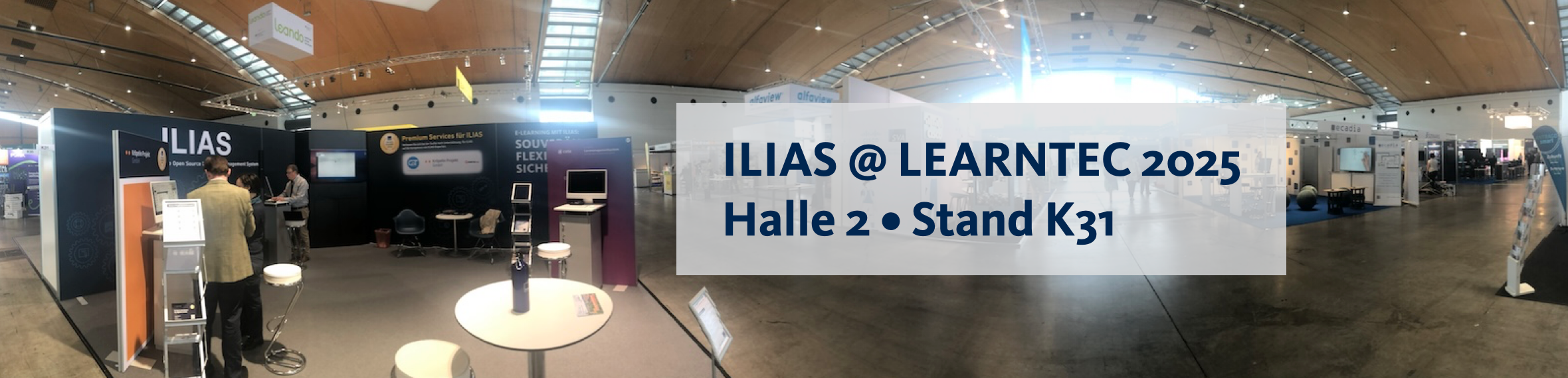 Auf der wichtigsten E-Learning-Messe im deutschsprachigen Raum präsentiert sich auch dieses Jahr wieder ILIAS auf einem eigenen Stand in Halle2, K31. Unterstützt von unseren Sponsoren CaT Concepts & Training GmbH, Kröpelin Projekt GmbH, Databay AG und Leifos GmbH zeigen wir neueste Entwicklungen bei ILIAS und bieten ein interessantes Standprogramm mit ausgewählten Vorträgen. Vorgestellt werden auch aktuelle Möglichkeiten der KI-Nutzung in ILIAS und die neueste Version von EDUTIEK.