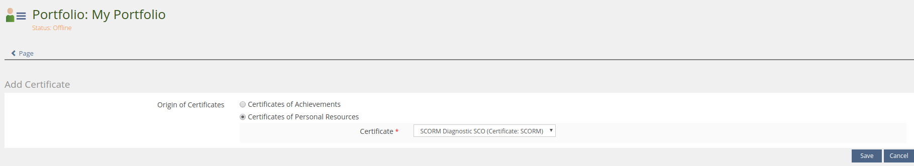 Therefore we suggest to Abandon Adding Certificates in Personal Workspace and to remove the option to add new certificates from the Personal Workspace to portfolio pages.