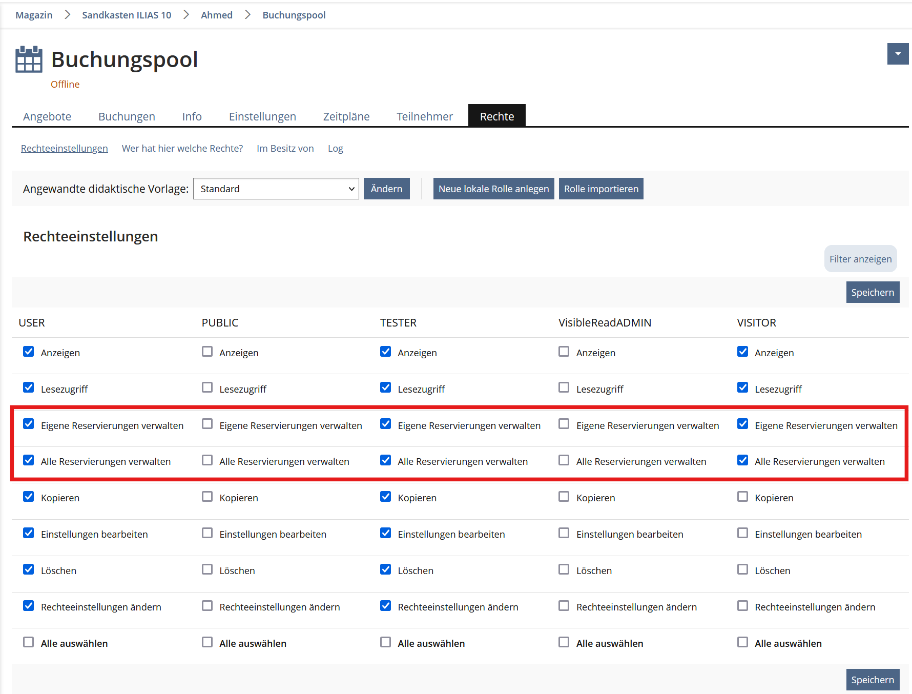 - If a role has the "Edit Settings"-permission, it can manage reservations of other users. Many users are not aware of this. To make the behavior more understandable, the permission "Edit Settings" should be divided.