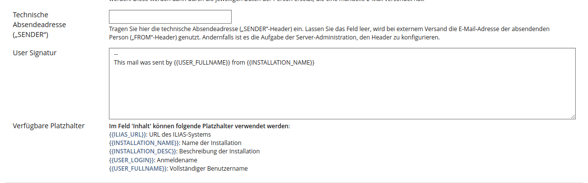 This mail was sent by {{USER_FULLNAME}} from {{INSTALLATION_NAME}}.is set.- If user have define an own signature in personal Mail-Settings, this signature is part of the text-body in a mail.